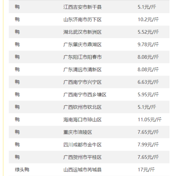 今日全国各地肉鸡、鸭、鹅、鸡蛋、禽苗等参考报价(2024年11月24日)