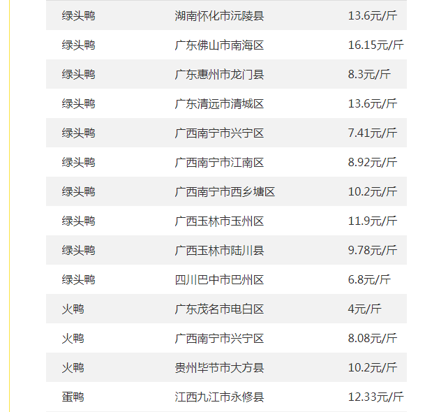 今日全国各地肉鸡、鸭、鹅、鸡蛋、禽苗等参考报价(2024年11月6日)