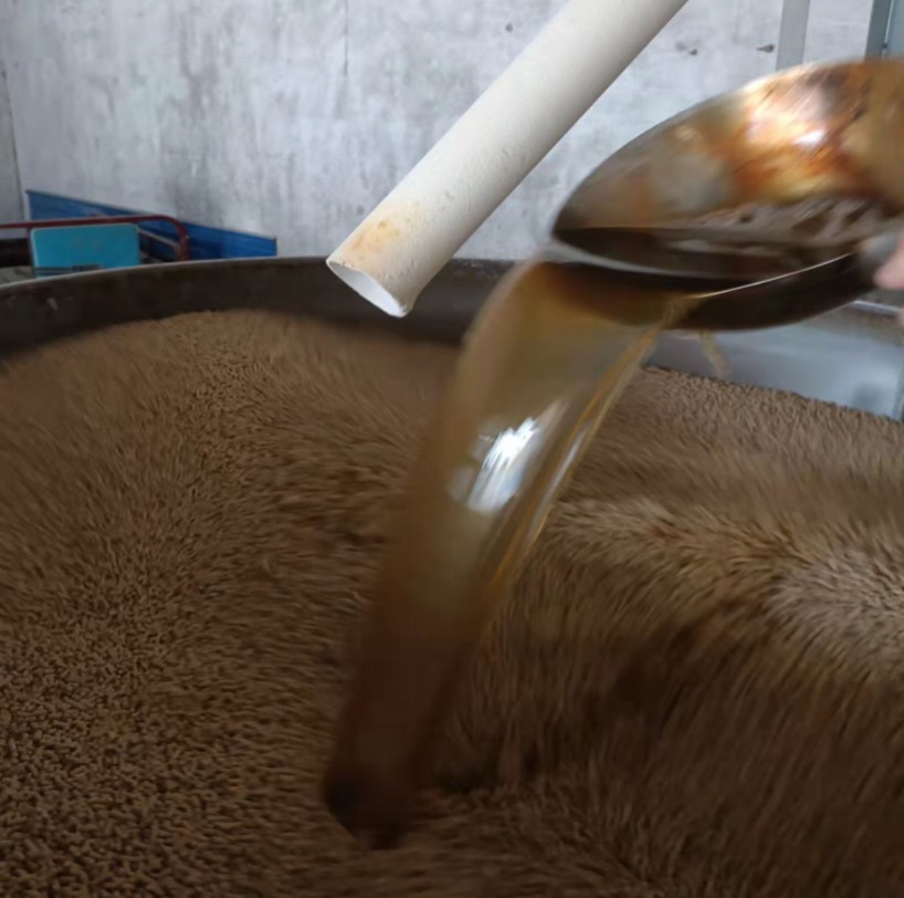 刘老板用的是 “禽健瘟清散” 这个配方,由山楂、陈皮、神曲等 22 味中草药组成,将中草药粉碎后,加入多糖性复合菌种营养基、水、鸡饲料和 99 多功能饲料发酵剂,密封发酵 3 天以上。具体发酵做法是:10 公斤 “禽健瘟清散”+1 公斤多糖性复合菌种营养基 + 100 公斤水 + 5 公斤鸡饲料 + 1 包 99 多功能饲料发酵剂,全部装入非金属容器中搅拌均匀后,密封发酵 3 天以上后使用。这种发酵处理不仅增强了中草药的药效,还促进了营养物质的吸收与利用。